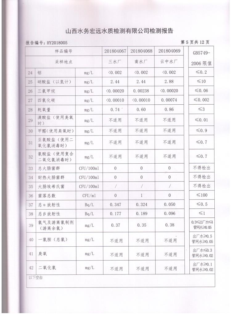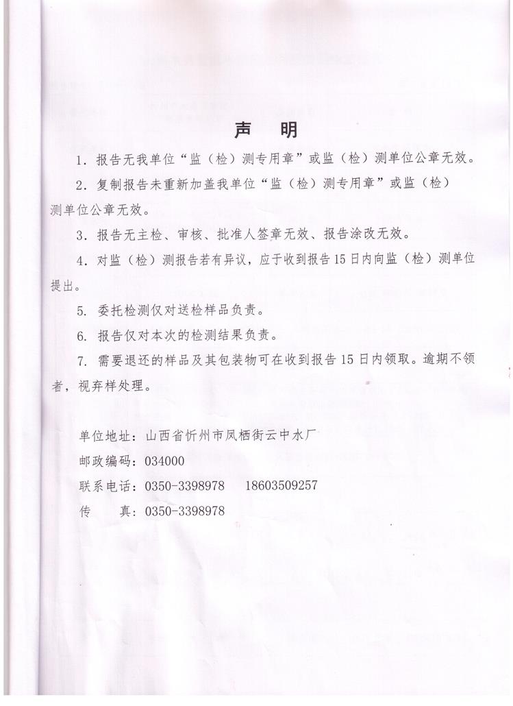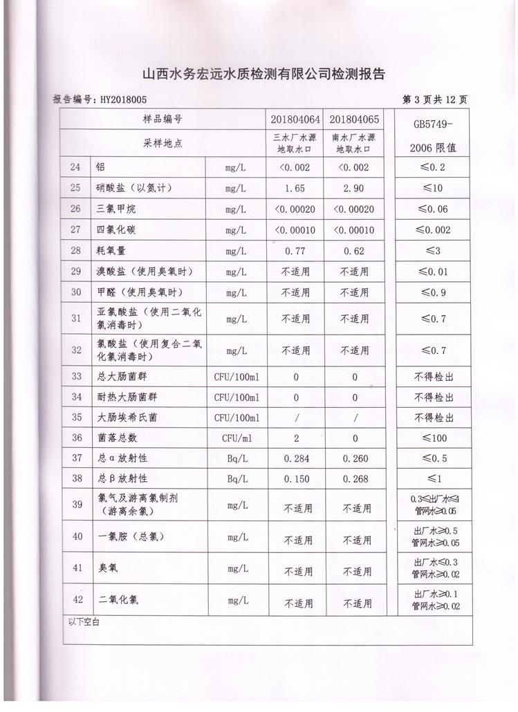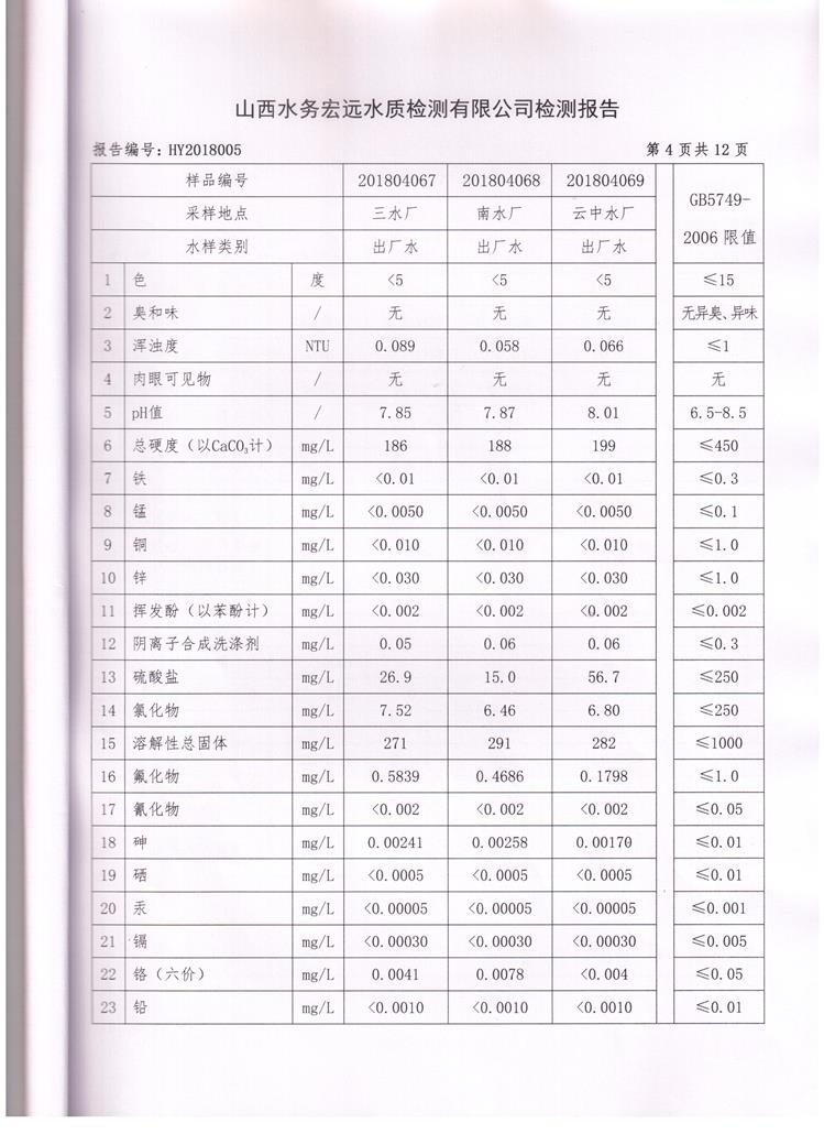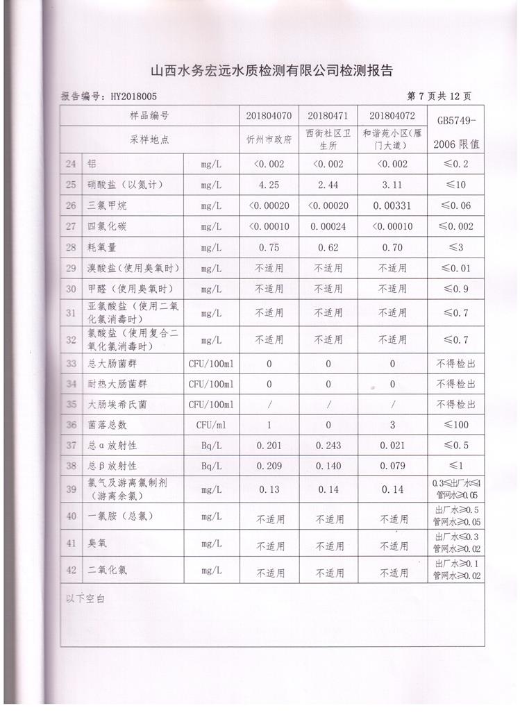 忻州城區(qū)公共供水水源水、出廠水、管網(wǎng)水、管網(wǎng)末梢水2018年4月份水質信息公示
