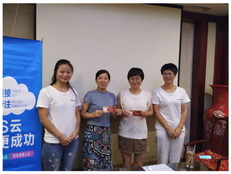 短暫的休息過后,由金華市金辰軟件公司王珺女士詳細解讀云普惠的優(yōu)惠政策。客戶從價格上直接感受到云產(chǎn)品的優(yōu)勢,開展熱烈討論。 這一環(huán)節(jié)結(jié)束后,由王珺女士抽出兩個二等獎,一一為客戶送上獎品。