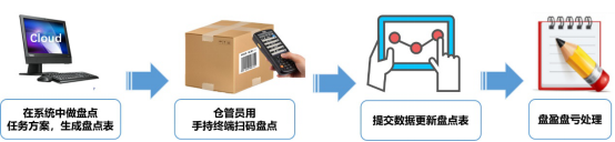 倉庫做好盤點準備后,手持射頻感應PDA設備,在倉庫轉一圈,自動感應倉庫產品信息、產品數量,提交后自動完成盤點數據,盤點完成。