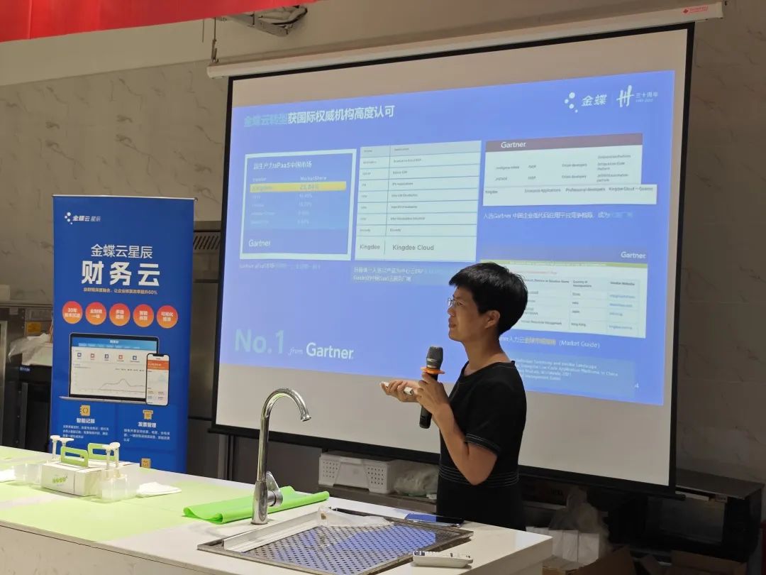2點(diǎn)半,金辰軟件副總經(jīng)理倪小紅女士做了開(kāi)場(chǎng)分享。簡(jiǎn)單介紹了舉辦此次活動(dòng)的初衷,以及金蝶云產(chǎn)品未來(lái)的發(fā)展。
