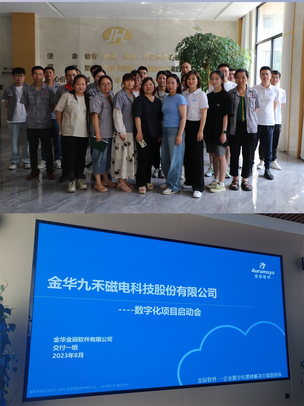 2023 年 8 月16 日,金華金辰軟件有限公司(以下簡稱金辰軟件)與金華九禾磁電科技股份有限公司(以下簡稱九禾磁電)共同舉辦的數(shù)字化啟動會在金華磐安圓滿完成。這次會議標志著九禾磁電數(shù)字化轉(zhuǎn)型邁出了重要的一步,同時也展示了金辰軟件助力企業(yè)數(shù)字化升級的強大實力。